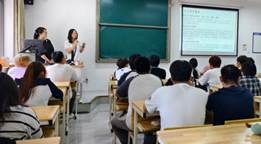 (韩怡老师介绍人才培养方案) (李国栋主任,吴翠平老师,赵晓妮老师与周昕琦同学合影)